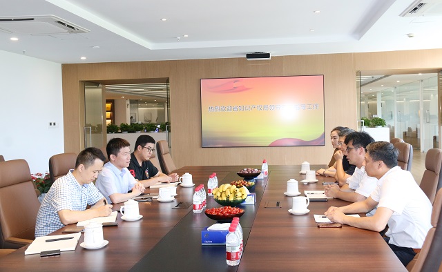 2020年8月18日,中國(guó)(浙江)知識(shí)產(chǎn)權(quán)保護(hù)中心副主任楊龍、浙江省知識(shí)產(chǎn)權(quán)研究與服務(wù)中心副主任金云翔、嘉興市市場(chǎng)監(jiān)督管理局知識(shí)產(chǎn)權(quán)處處長(zhǎng)王勇峰等一行蒞臨公司指導(dǎo)工作。公司總經(jīng)理沈杰、副總經(jīng)理鮑紅亮、副總經(jīng)理尤金山進(jìn)行了熱情的接待。