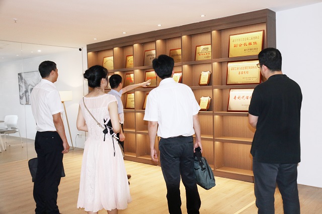 在沈總的陪同下,中國(guó)(浙江)知識(shí)產(chǎn)權(quán)保護(hù)中心、浙江省知識(shí)產(chǎn)權(quán)研究與服務(wù)中心及嘉興市市場(chǎng)監(jiān)督管理局領(lǐng)導(dǎo)一行參觀了我司的辦公區(qū)及各功能區(qū),對(duì)我司的辦公環(huán)境、文化建設(shè)等方面進(jìn)行了全面了解。
