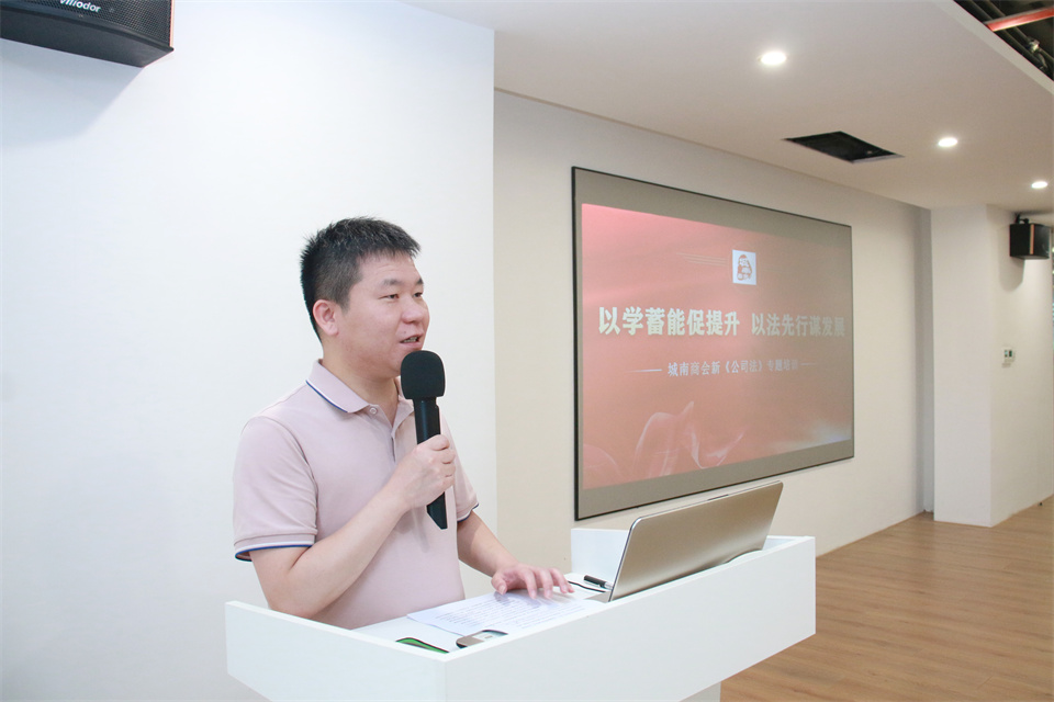為深入學(xué)習(xí)新《公司法》修訂的基本精神和重要內(nèi)容,幫助會員企業(yè)培養(yǎng)法治思維、提升合規(guī)經(jīng)營管理水平,提高法律風(fēng)險防范能力。6月25日下午,嘉興市城南商會在我司舉辦“以學(xué)蓄能促提升、以法先行謀發(fā)展”新《公司法》專題培訓(xùn),會長張文芳等80多位企業(yè)家及會員代表蒞臨我司參加活動,城南街道黨委委員周翟出席活動并致辭。