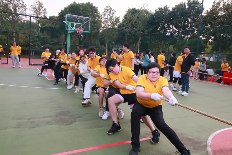 第二環(huán)節(jié)的男子籃球賽更是精彩紛呈。球員們在球場上奔跑、跳躍、傳球、投籃,每一個(gè)動(dòng)作都充滿力量與激情。場上選手你爭我奪,場邊啦啦隊(duì)熱情助威,歡呼聲與吶喊聲此起彼伏,將比賽氛圍推向高潮?;@球賽不僅是一場競技對決,更是團(tuán)隊(duì)凝聚力與公司精神風(fēng)貌的生動(dòng)體現(xiàn)。